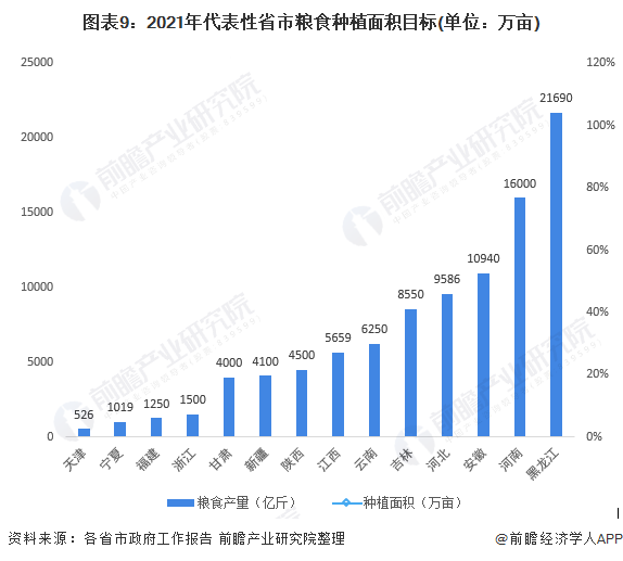 2021年各地政府工作报告除公布了上述地区经济增长及居民收入和消费等地区发展重点关注指标外,多个省市对2021年农业发展及粮食安全的具体目标做详细的分析。
