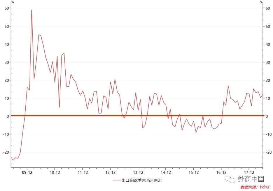 2、出口负增长时间越长,积极财政政策加码力度越大,政策调整的力度和负增长持续时间有重大关系。